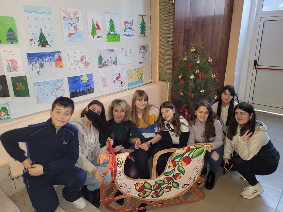 разено: реновирани пейки, украсени със снежинки, лампички, гирлянди, диско топки, рамки за снимки, подаръци под елхата, коледни песни. Учениците от клуб „Приятели на природата“ изработиха коледната екоукраса, а от клуб „Екохрани и околна среда“ украсиха живата елхичка, която след това ще бъде засадена в естествена среда. Коледарите от клуб „Родолюбие“ благославяха и пяха за здраве и берекет. В допълнение, коледните песни и музикалните междучасия допринесоха магията на коледния дух да завладее всички и да носи настроение! Резултатът е налице – ефектно училищно пространство, много споделени творчески и работни моменти, подкрепа, удовлетворение от свършеното.