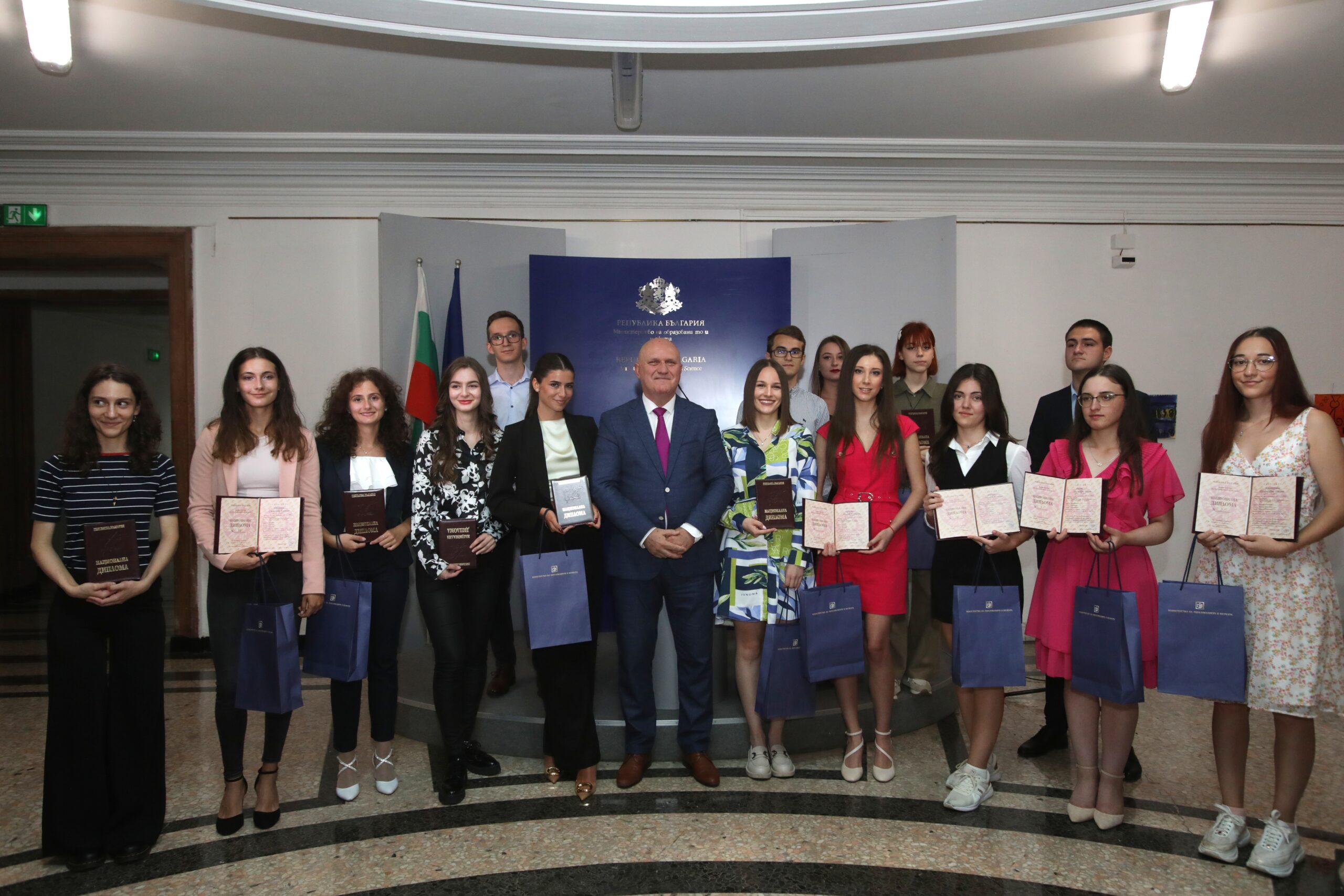„Отличието е своеобразен израз на нашето признание към вашия ум, амбиция и жажда за образование. Пожелавам ви да бъдете все така упорити, устремени към знанието – хора, които не само осъществяват своите мечти, но и хора, които ще могат да допринесат за по-доброто бъдеще на България“, заяви още министърът.