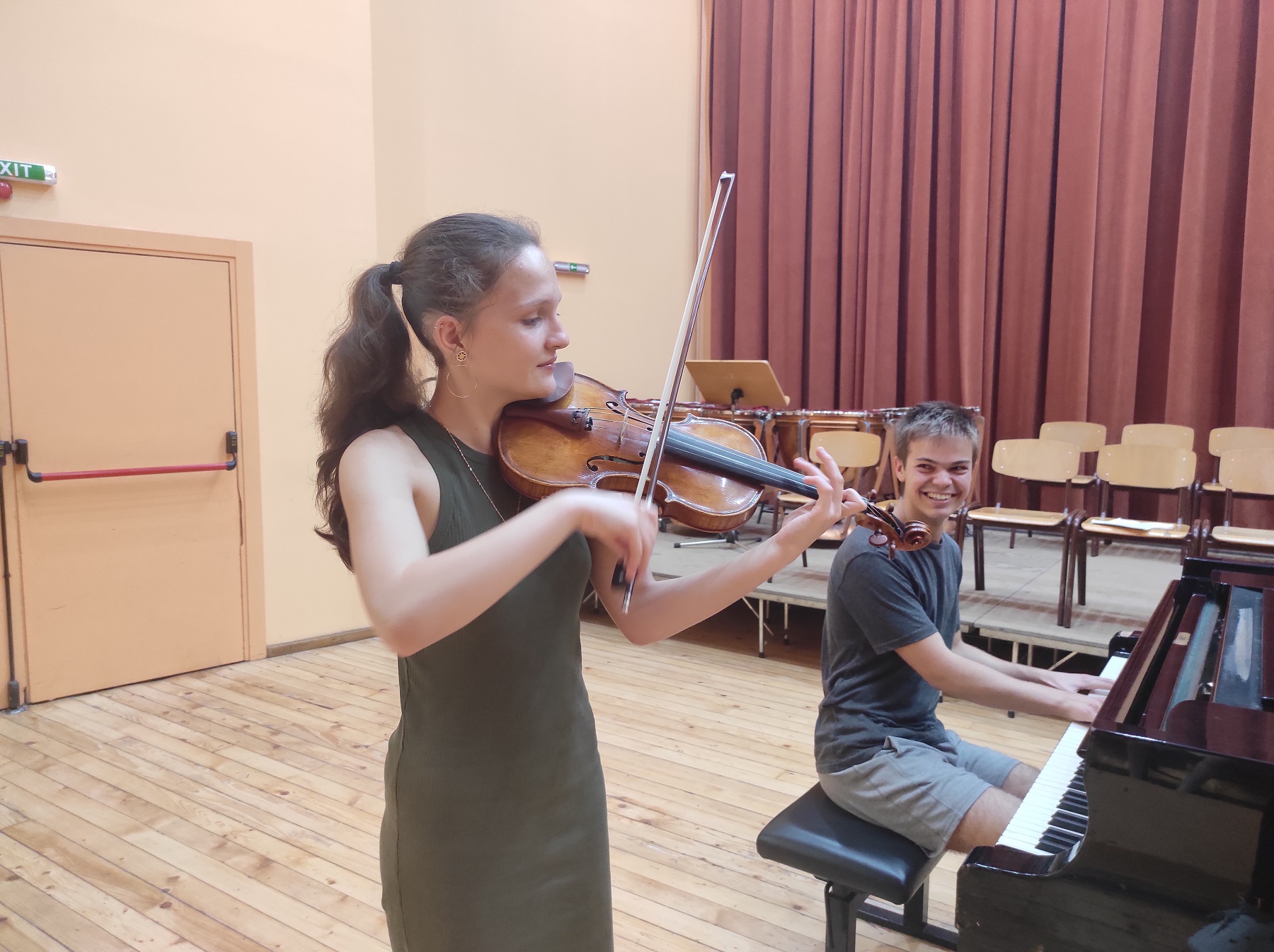 „Всичко стана спонтанно. Реших, че ще напиша произведение. Предложих на Ева да е за пиано и цигулка, а тя веднага се съгласи. Написах го за около месец, след което започнахме да го репетираме“, споделя десетокласникът, който композира всеки ден.