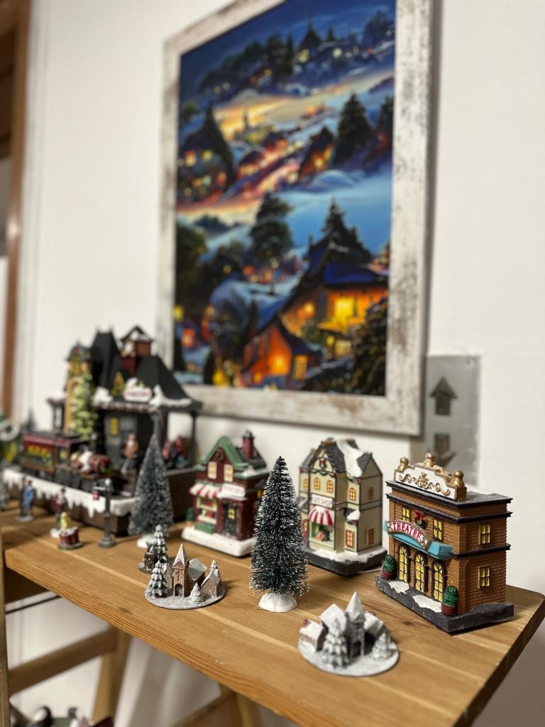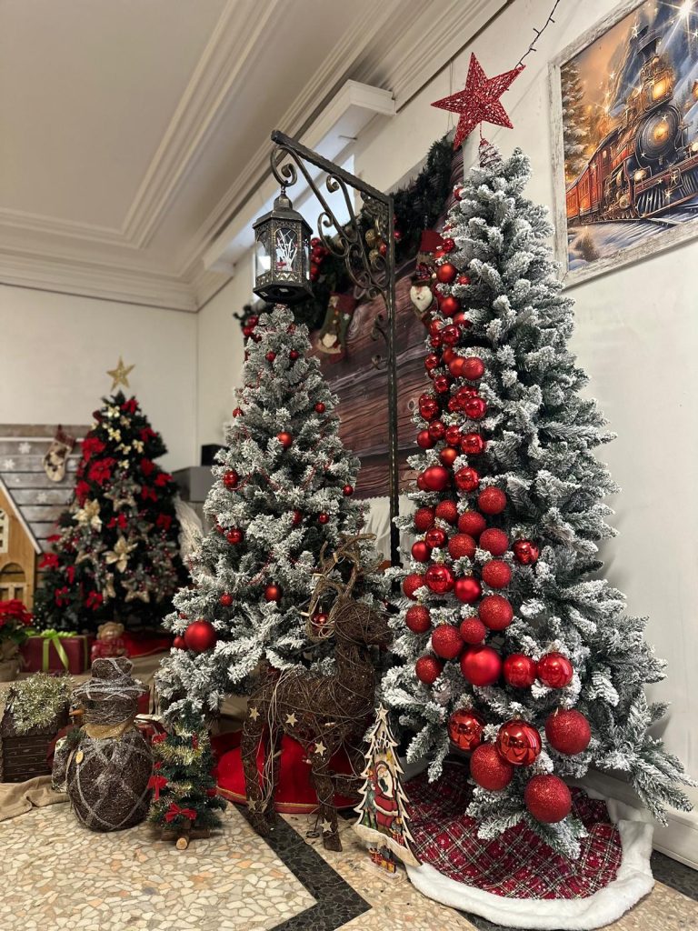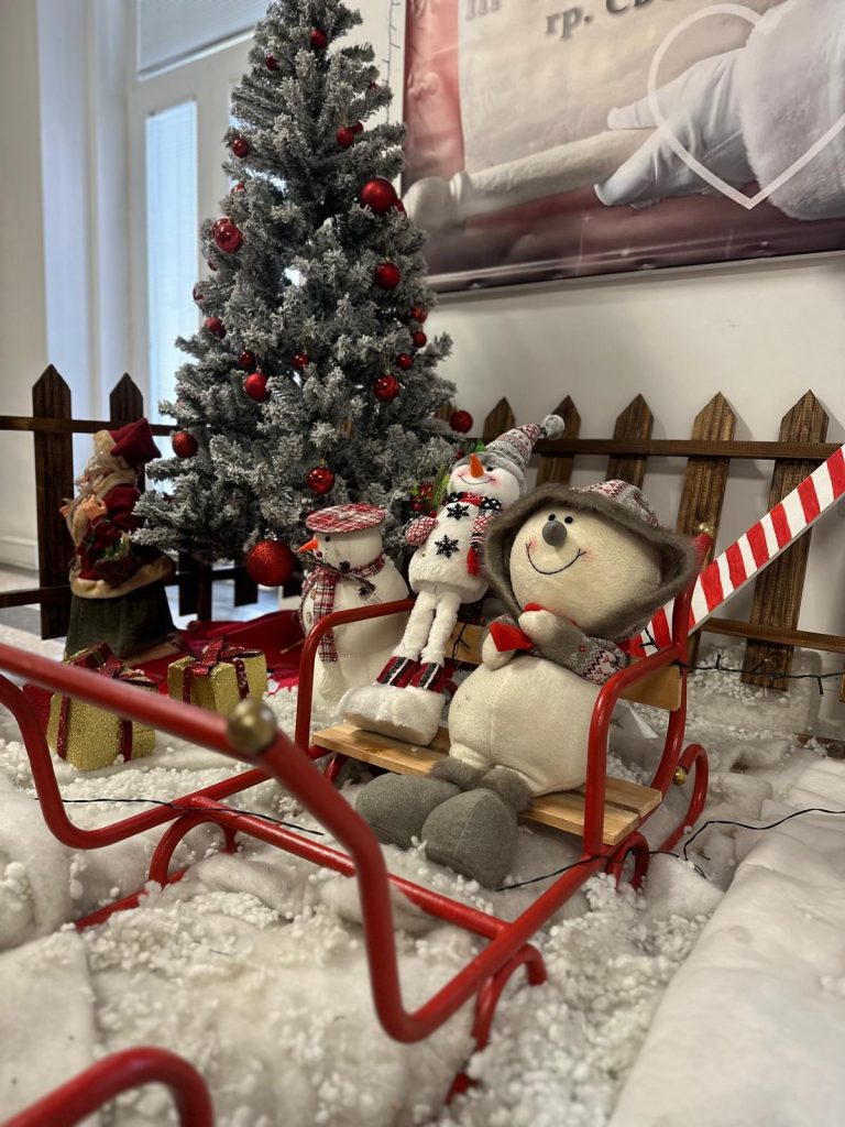 Фоайетата също са украсени с внимание към детайла – от елхи и ръчно направени венци и чорапчета до дървени снежни човеци, изрисувани с прецизност и фантазия.