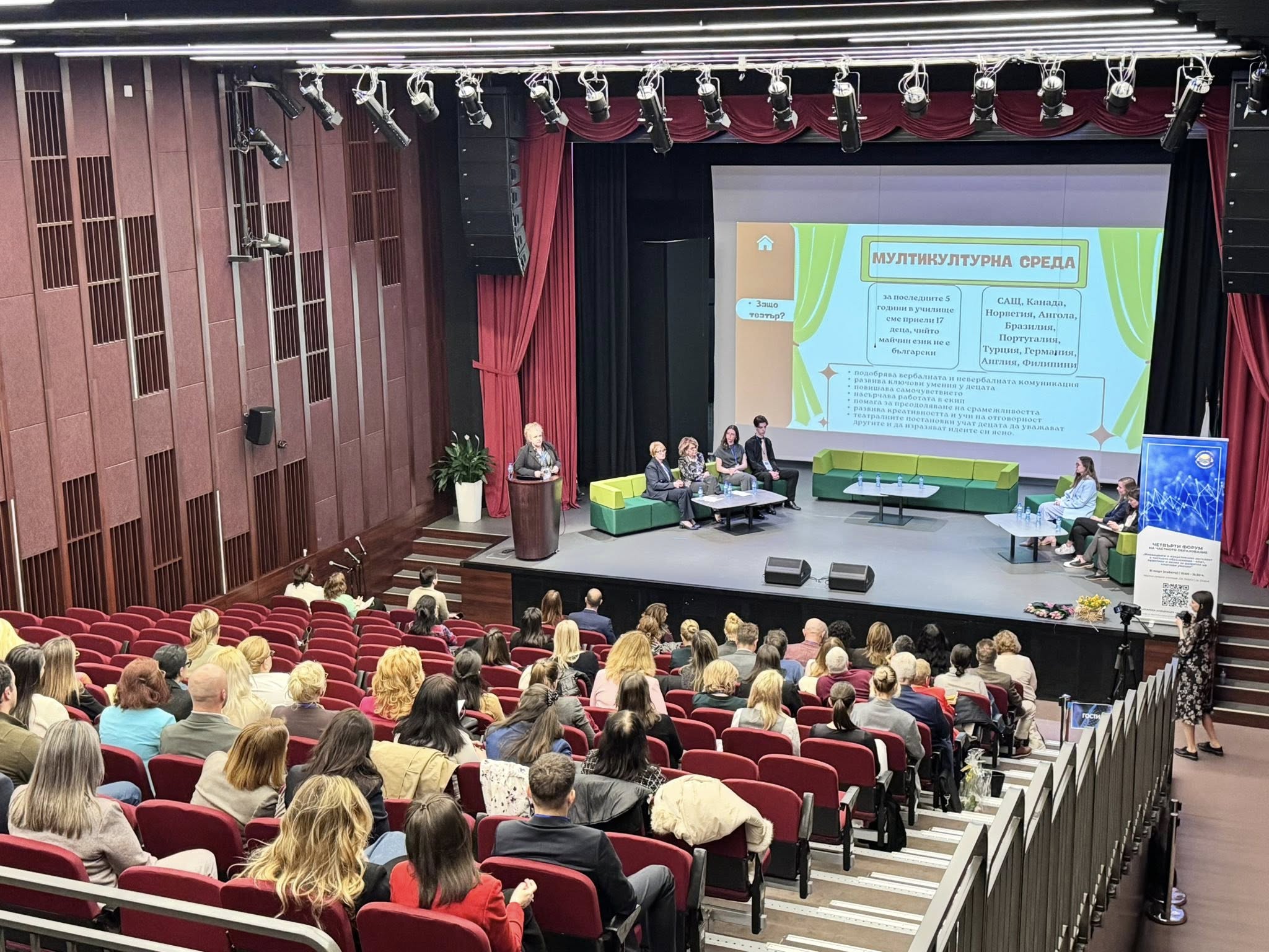 130 директори, учители, ученици, партньори и гости взеха участие в Четвъртия форум на частното образование на тема „Иновациите и изкуственият интелект в частното образованието – опит, практики и визия за развитие на ключови умения“. Организатор е Българската асоциация на частните училища. Домакин на срещата беше Частно средно училище „Свeти Георги“ в София.