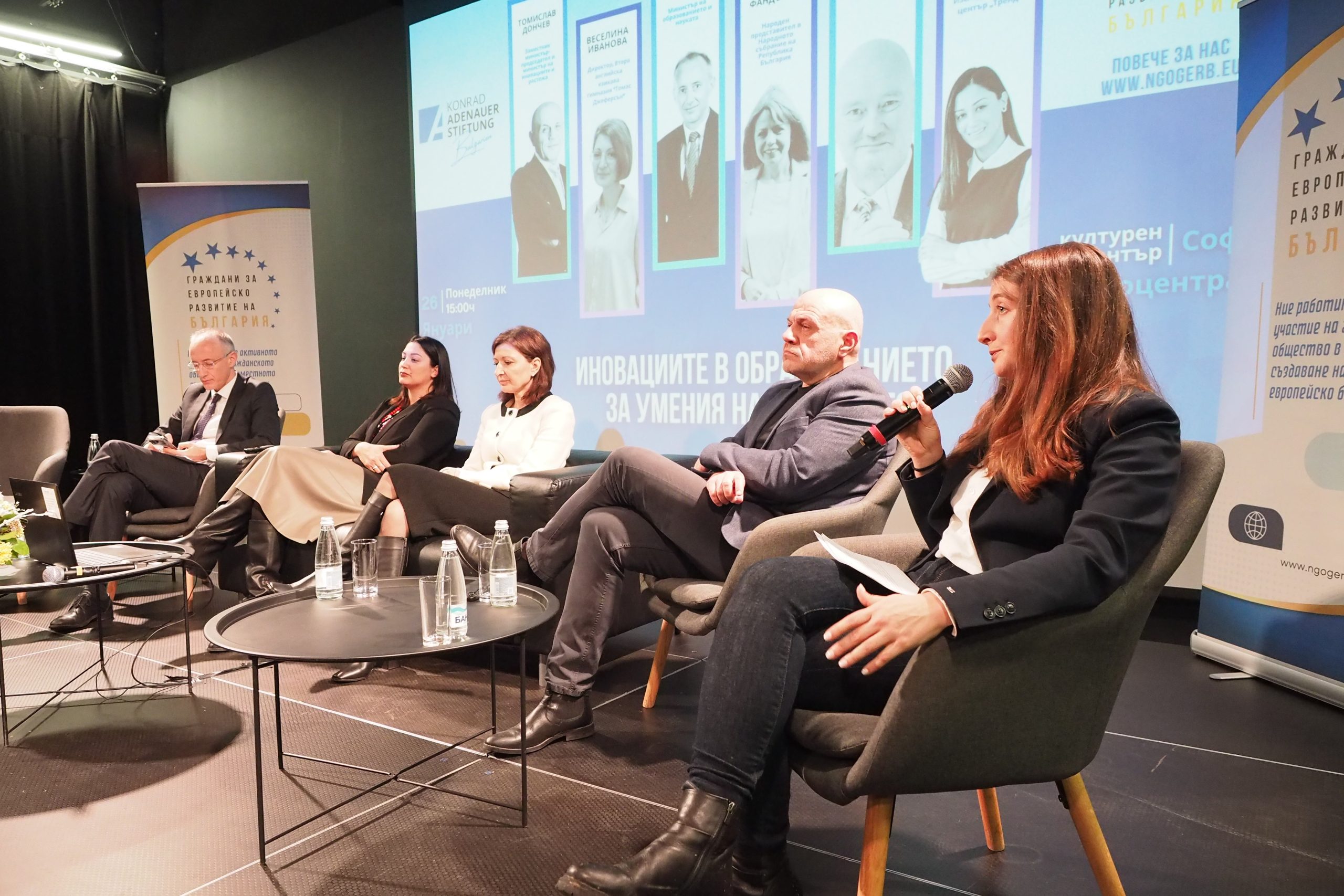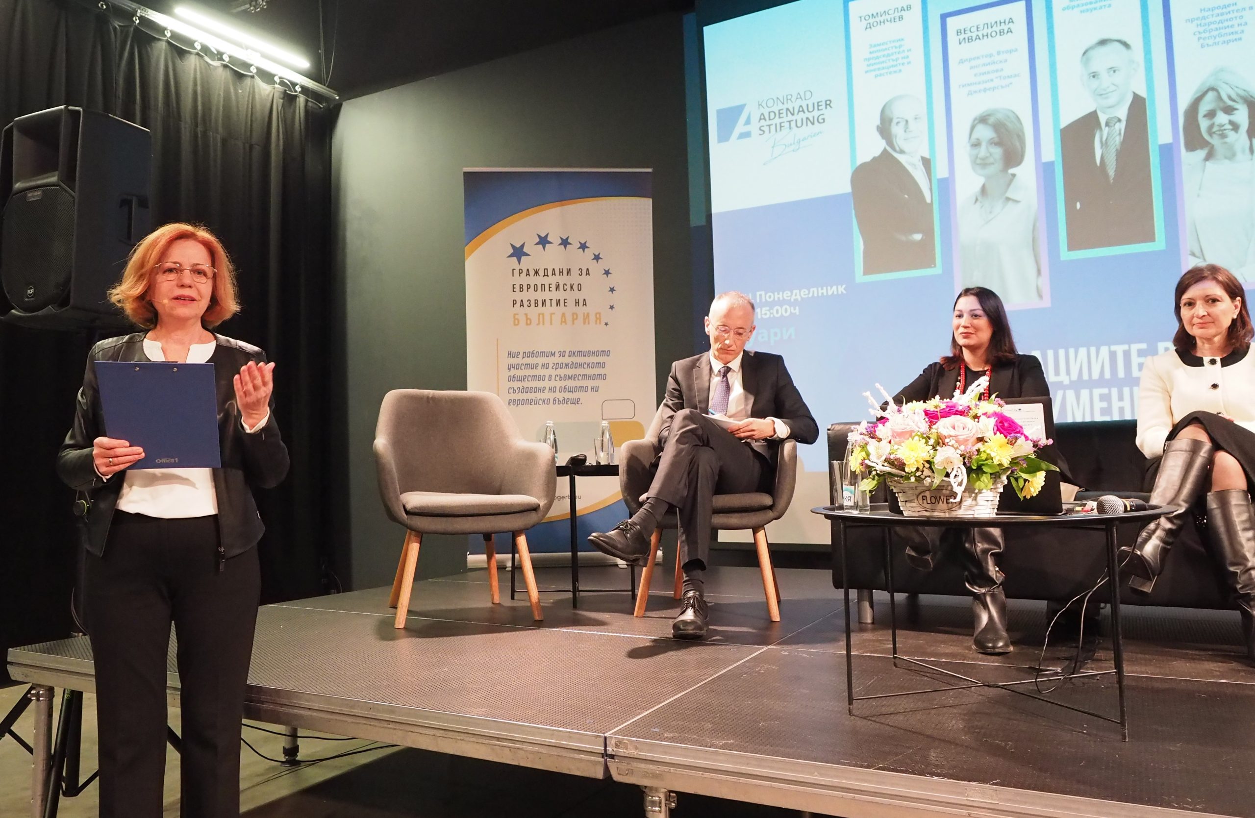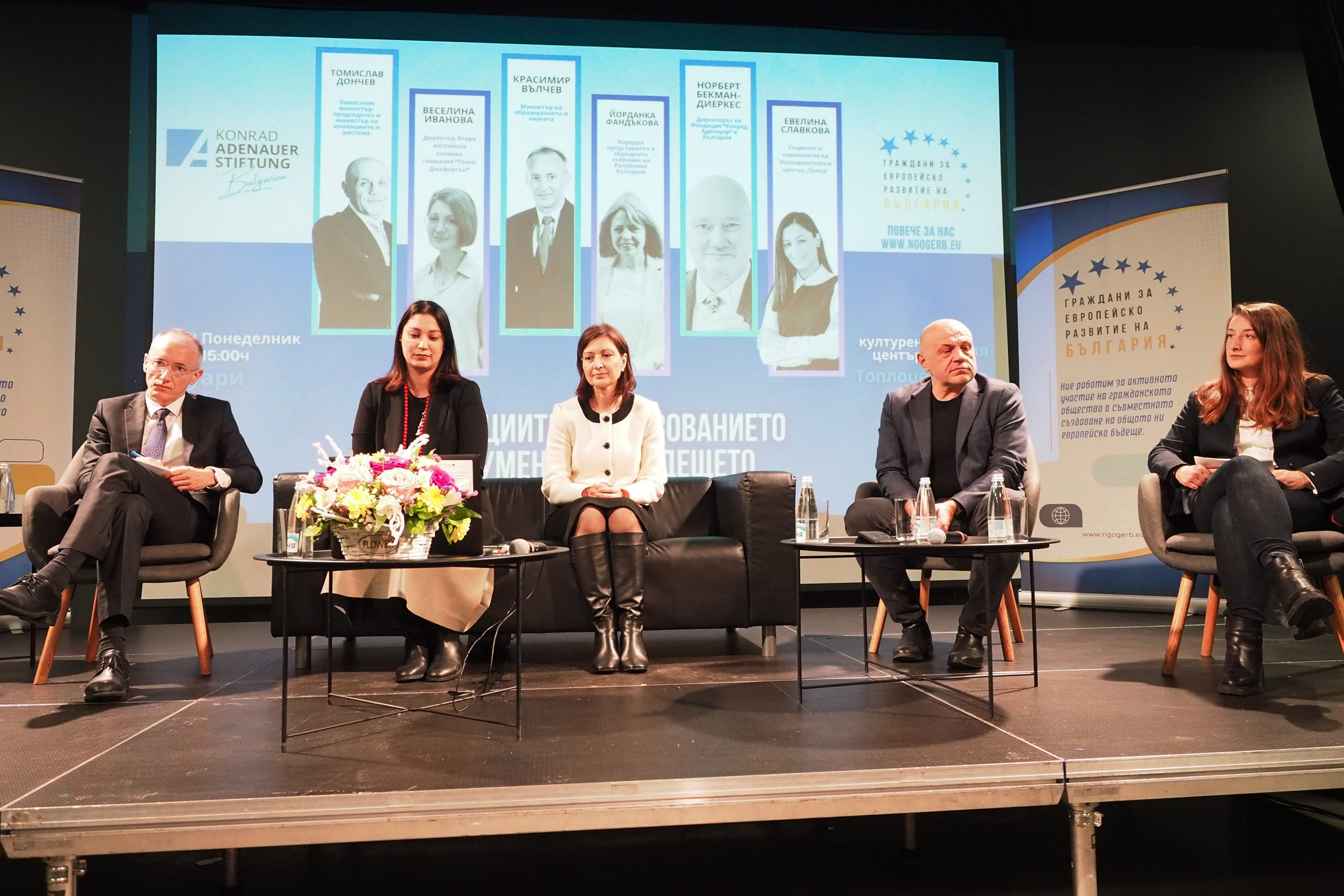 Панелисти на събитието бяха народният представител Йорданка Фандъкова, заместник-министър председателят по иновации и растеж Томислав Дончев, директорът на Втора английска гимназия „Томас Джеферсън“ – София, Веселина Иванова и социологът Евелина Славкова. Форумът се провежда с подкрепата на Фондация “ Конрад Аденауер“.