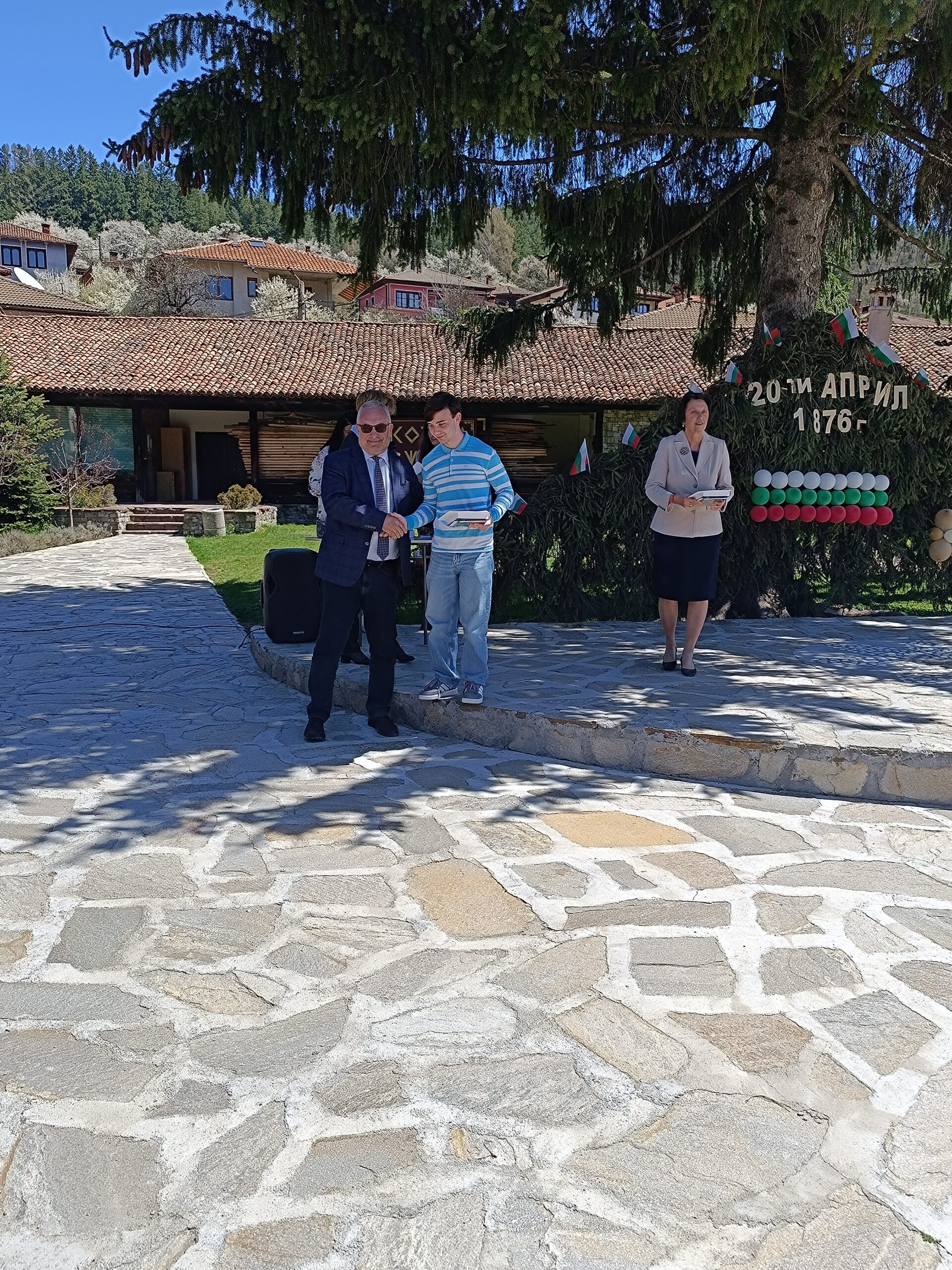Тържествената церемония по награждаването се провежда в двора на СУ „Любен Каравелов“ – Копривщица, което е домакин на олимпиадата.