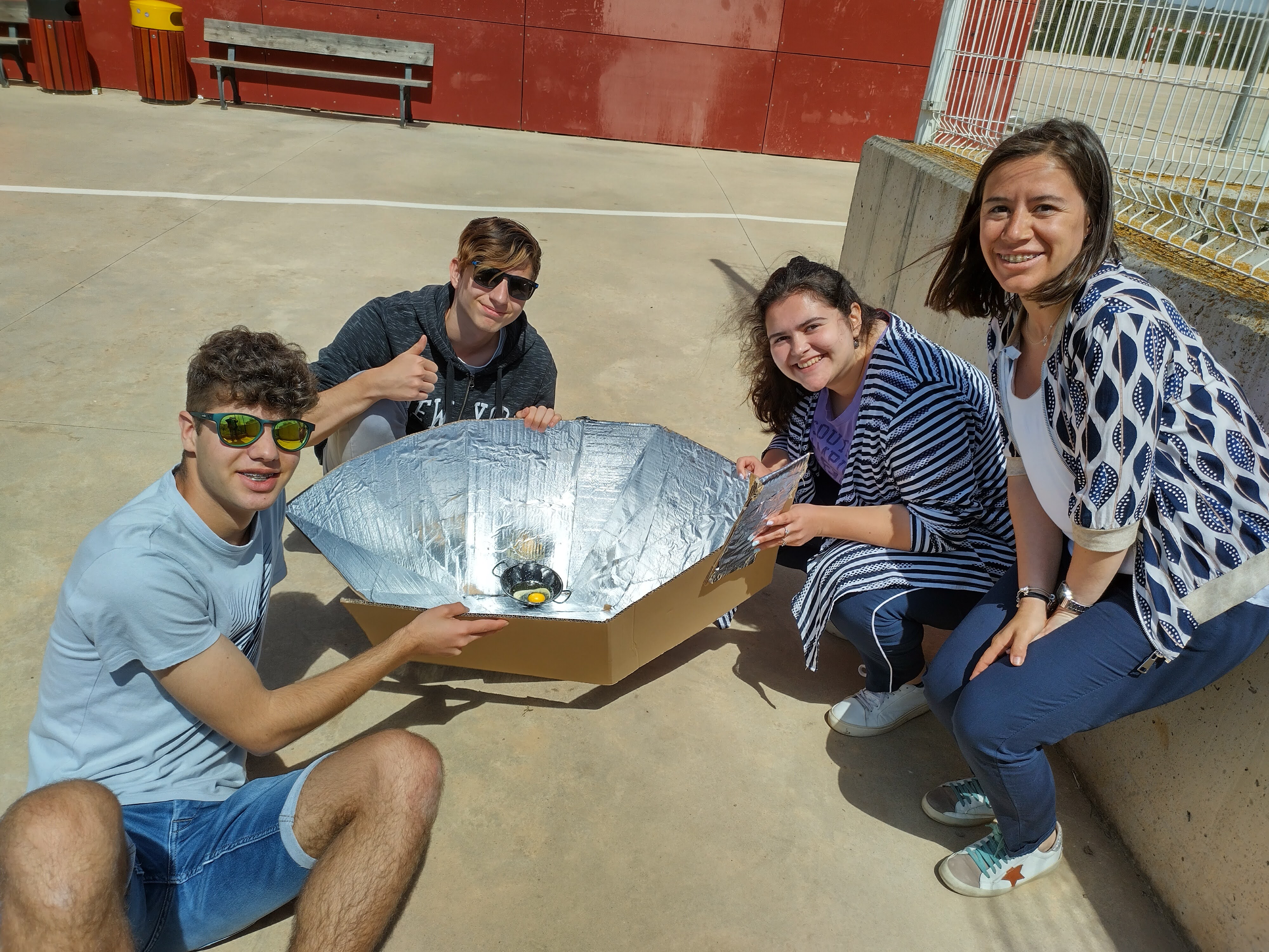 На проведеното международно състезание нашите деца се справиха най-добре със задачата да направят сферично огледало с картонно алуминиево фолио, в което да пържат яйце. Във фокуса се слага метално съдче, в което се сипва олио, то загрява и яйцето се пържи. Направихме го показно в Испания, но масово се прилага в Африка. Сферичните огледала са специално изработени. Пържихме и картофи. Никакъв не е проблемът, само трябва да има слънце.