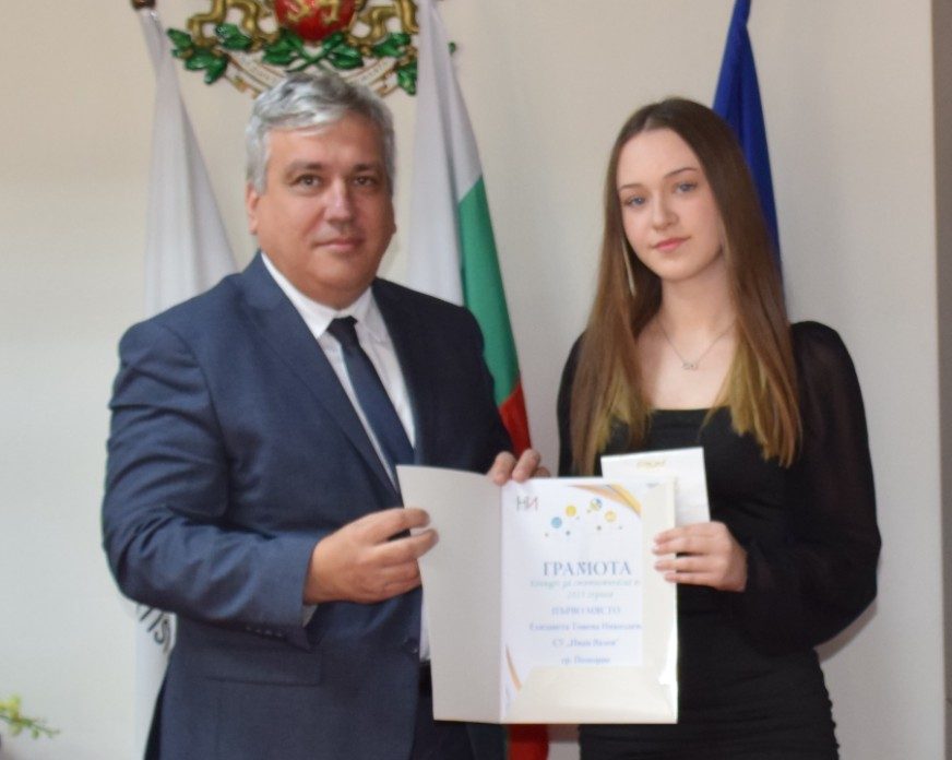 Колективът и ръководството на СУ „Иван Вазов“ в Поморие се гордеят с успеха на Елизавета, която показа, че есе може да се пише не само по литература, история и философия, но и по една от най-трудните предметни области в училище – математиката.