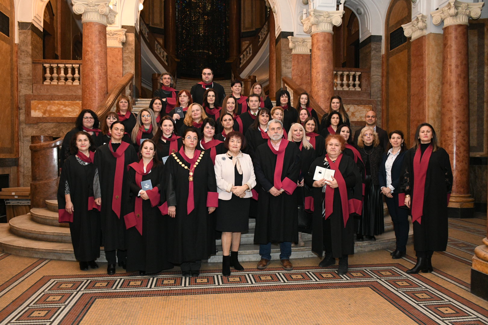 45 учители от цялата страна, завършили най-високата първа професионална квалификационна степен (ПКС) в Департамента за информация и усъвършенстване (ДИУУ) на учители към Софийския университет „Св. Климент Охридски“, получиха своето свидетелство на тържествена церемония в Ректората на Алма матер.