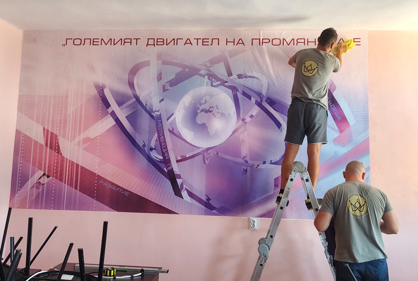 „Преди няколко години гостувах на училище, което бе преобразено по този начин, и си казах, че и нашето трябва да изглежда по същия начин“, обяснява събеседничката ми. Така се свързва с госпожа Спърлинг по телефона и се уговарят да се видят на място и да обсъдят подробностите около проекта. Първото, което трябва да се направи, е да се формира работна група. Екипът трябва да включва литератор, фотограф и декоратор.