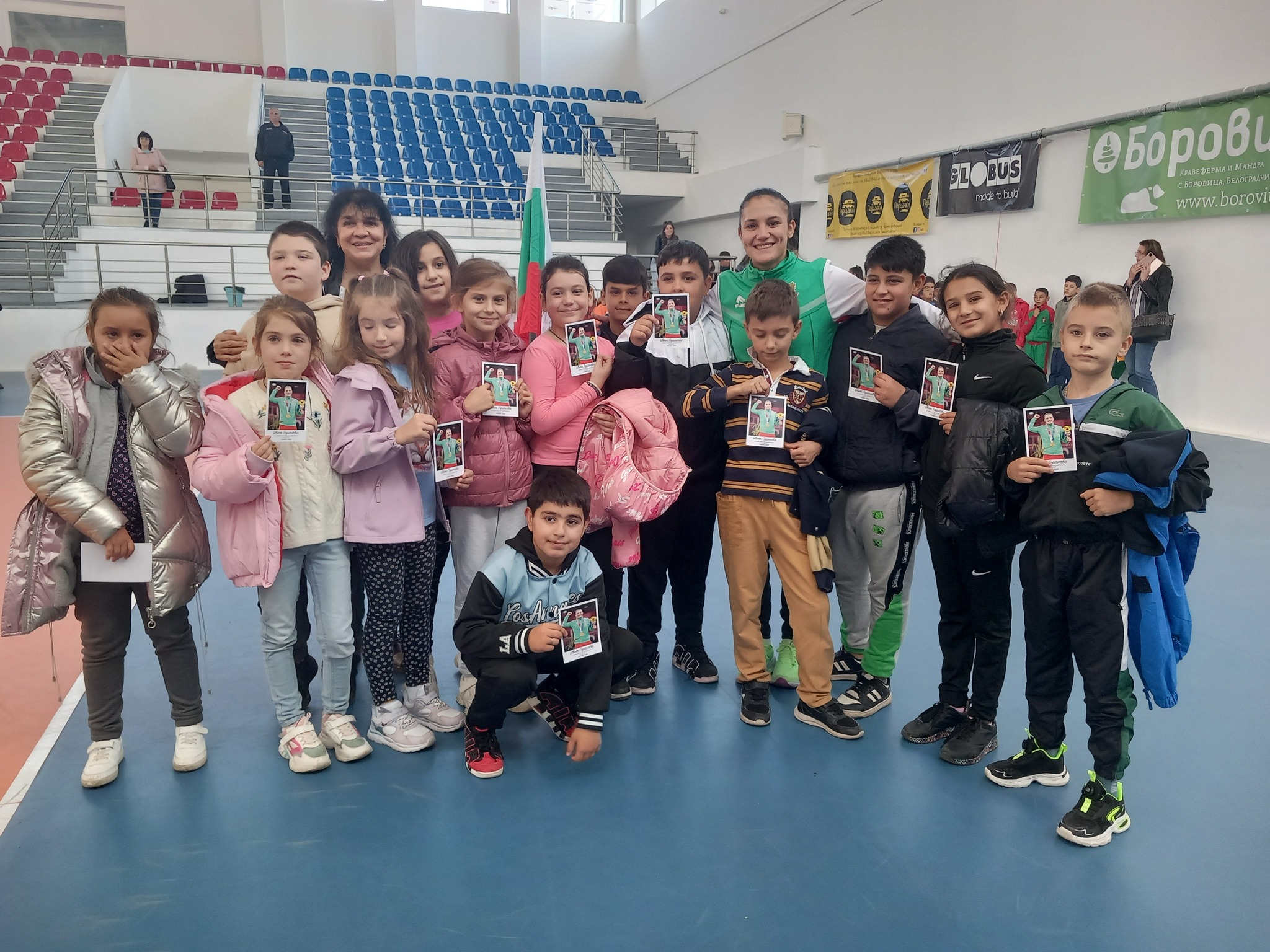 Така започна срещата на децата от Града на скалите с носителката на олимпийско злато. Ивет Горанова разказа на събралите се в спортната зала „Васил Михайлов“ ученици личната си история, сподели моменти от трудния път към върха и ценните уроци, които е получила. Състезателката по карате, която печели златен медал в категория до 55 кг на Летните олимпийски игри в Токио през 2021 г., направи демонстрация по физическа подготовка на децата и се снима с тях.