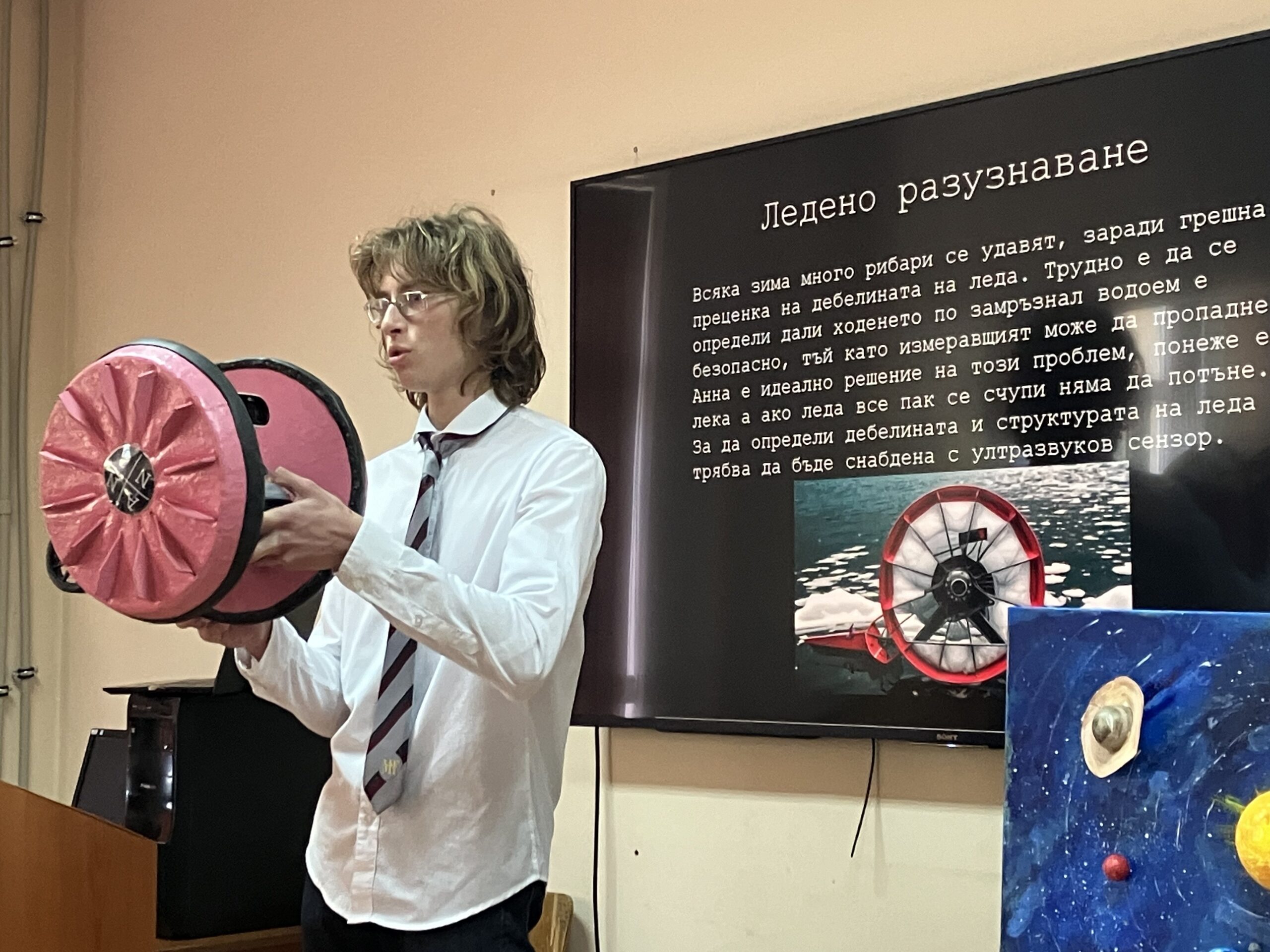 Кристиян Петров от ППМГ „Никола Обрешков“ в Казанлък бе награден за значимост и приложимост на проекта за култивиране на цианобактерии суперхрани.