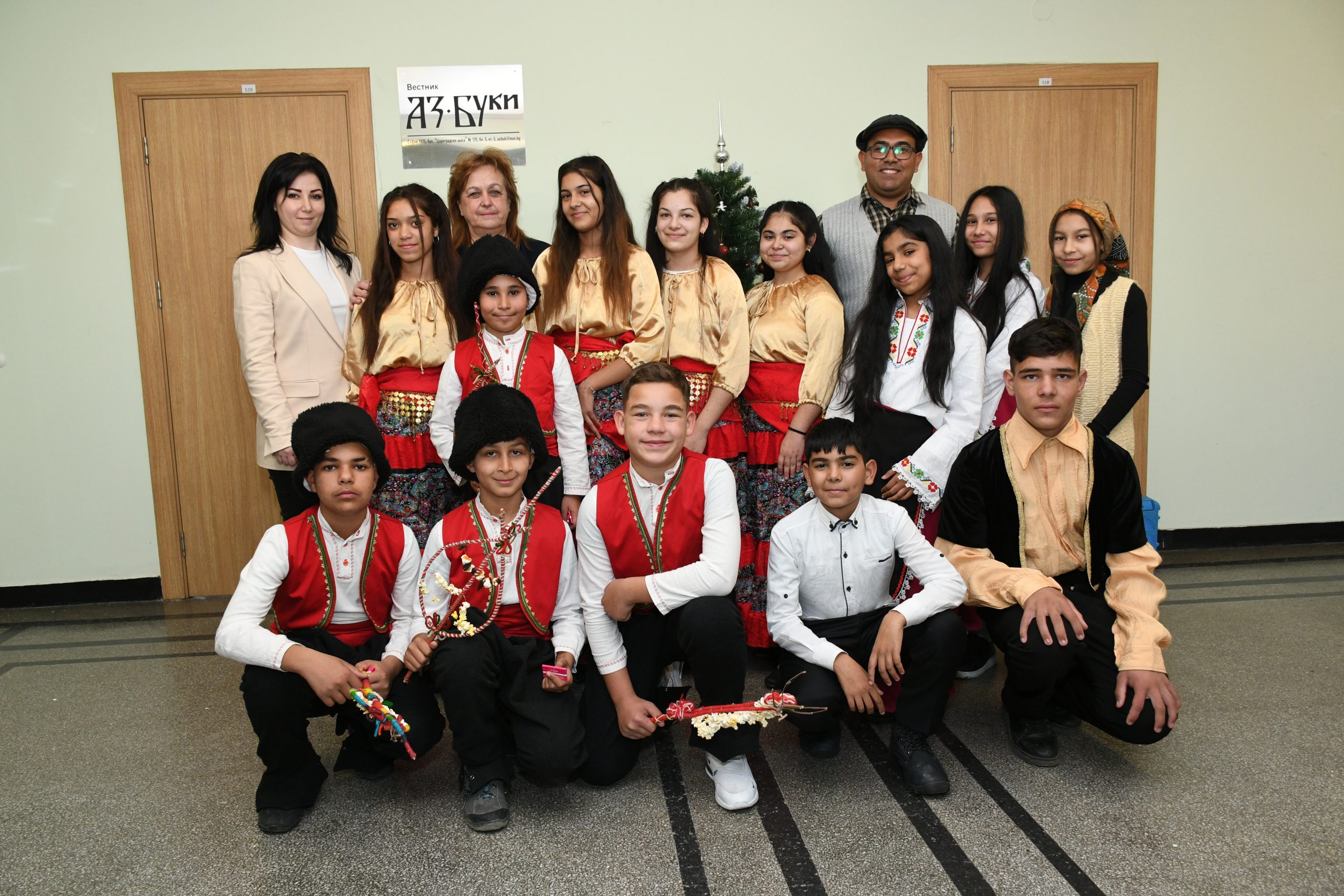 Дни преди Банго Васил – 14 януари, празникът, на който ромската общност почита Новата година, ученици от III до VII клас от ОУ „Гео Милев“ в село Белозем, о. бласт Пловдив, дойдоха на гости на Национално издателство „Аз-буки“ заедно със своята директорка Диана Генова.