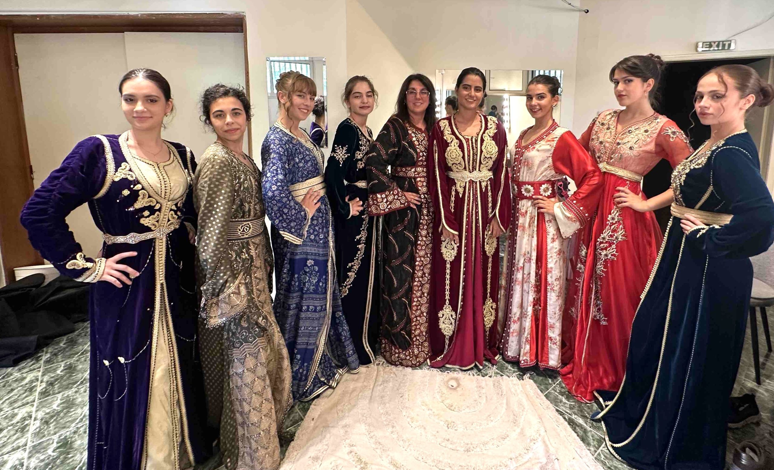 Вяра Любенова (в средата) с ученички от 9. френска гимназия в София по време на дефиле на кафтани, предоставени от личната колекция на посланика на Мароко у нас Н.Пр. Закия ел Мидауи. Дефилето се провежда в УАСГ в Деня на Трона, национален празник на Мароко Снимка АПФБ