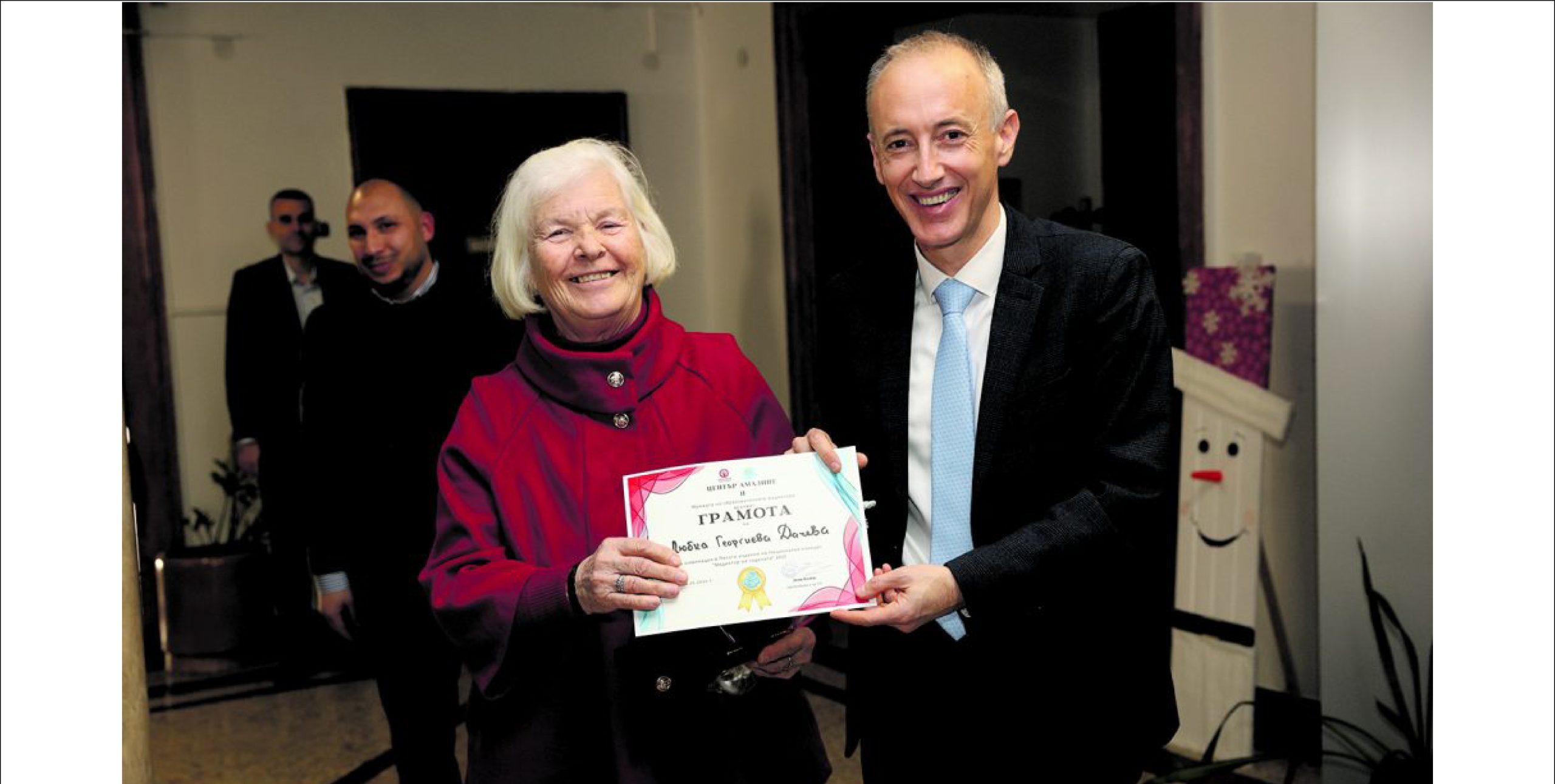 Любка Дачева получава своята награда за образователен медиатор от министър Красимир Вълчев Снимкa Крум Стоев